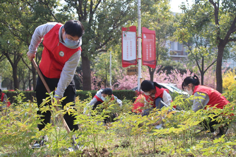美丽校园我的家,“智耀青春”服务队志愿者们在劳动中感受快乐,在服务同学中提升自身价值。