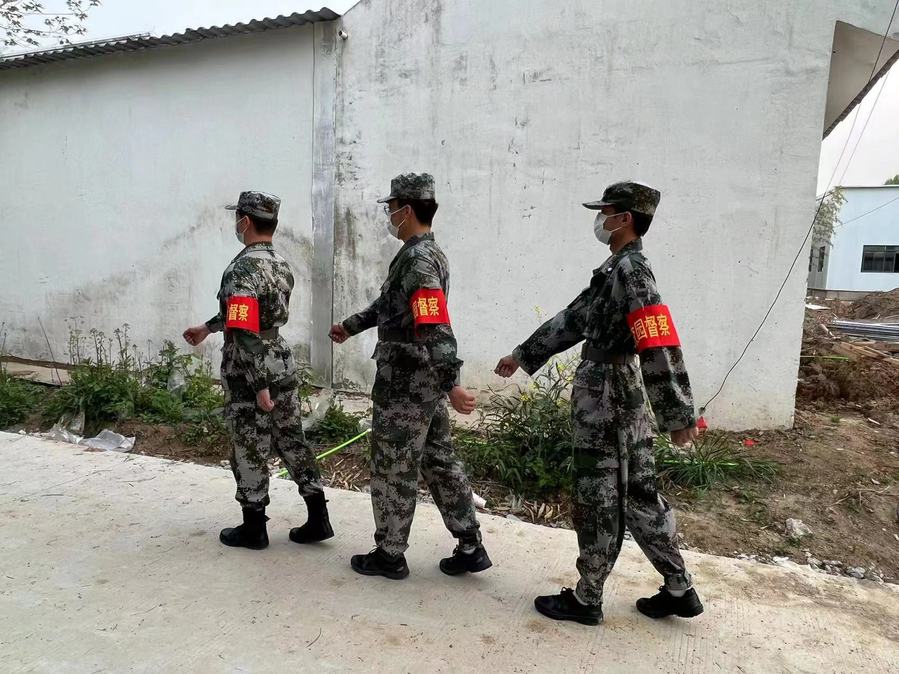 在常态化疫情防控形势下,他们佩戴印有“校园巡察”字样的红袖章,迈着整齐的步伐,每天不定时巡逻在校园的每一个角落,为校园的安保增加力量,让校园疫情防控多一份安心。