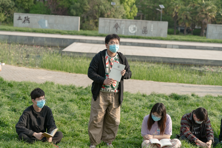 伴随着清晨和煦的阳光,来自财贸学院各专业和周恩来研究协会共60余名同学齐聚音乐广场湖畔草坪,翻开手边的《马克思主义十五讲》《共产党宣言》等,诵读经典、分享心得,感受信仰的力量,畅谈他们心中的马克思主义,马克思为什么钟情于红色?马克思主义学说为什么以马克思名字命名?从《共产党宣言》与十月革命,到新民主主义革命、红军长征,再到党的十九大、十九届六中全会,习近平新时代中国特色社会主义思想,青年们回顾了马克思主义理论发展的历程,并声情并茂的朗诵了《共产党宣言》,向有温度的信仰致敬,重温有色彩的经典。活动开始前,多数同学是第一次阅读马克思主义专题书籍,读书会让原本神秘的马克思主义变得清晰起来,也让青年们心中的马克思主义形象更加高大。薛一博同学在分享中说:“开始阅读这些书籍的时候,心中充满了崇敬之情,读完过后更是被马克思的睿智所折服,也更加坚定了我对社会主义道路的自信”。