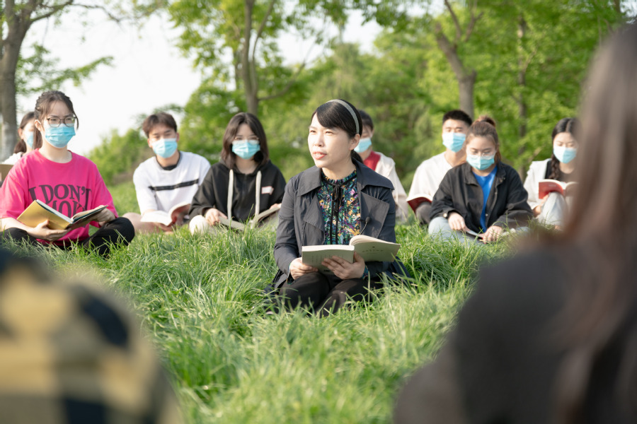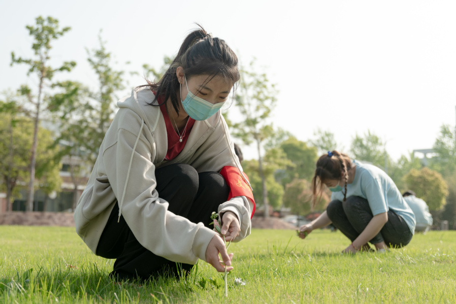 “纸上得来终觉浅,绝知此事要躬行”,习近平总书记曾说:“社会主义是干出来的,新时代也是干出来的”,随着课堂的深入,同学们纷纷表示收获十分丰富,作为社会主义接班人的使命感与责任感更强了。这时,一节“草坪上的劳动课”又悄然开始。史建梅、孔月红两位老师介绍了马克思主义劳动观的基本观点,以及劳动教育对于青年学生成长的意义,教育青年劳动不但创造了人的物质生活,也充盈着人的精神世界,使人得以成长。随后,同学们围绕校园进行环境清理,拔除草坪上的杂草,大家用自己的双手,用实干践行马克思主义劳动观,在劳动中寻找自己的价值。南太加同学说:“作为在校大学生,美丽校园就是我们的家,我们都是校园建设的主人翁,我们愿意将这种别开生面的劳动课践行下去,养成好的劳动观,筑牢全心全意为人民服务的思想根基”。