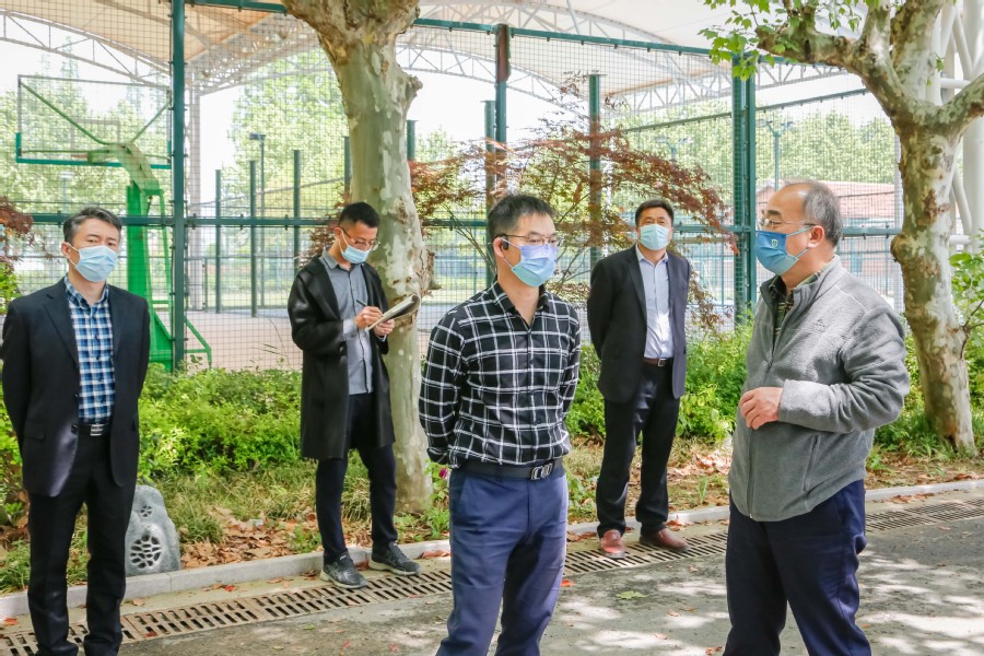 校领导实地查看了南北大门、小白楼、食堂、美食广场、机房、阅览室、教学楼、农博园、学生公寓等场所,听取了洪泽湖产业学院、后勤管理处相关负责人的现场汇报,深入了解工程进度、质量管控、安全防范等情况。