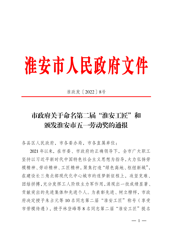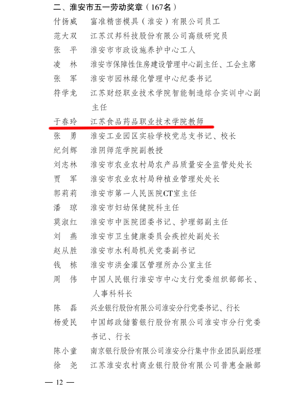 4月27日,淮安市人民政府发布了《关于命名第二届“淮安工匠”和颁发淮安市五一劳动奖的通报》(淮政发〔2022〕8号),BBV电子·(中国)网站信息工程学院于春玲老师荣获“淮安市五一劳动奖章”荣誉称号。