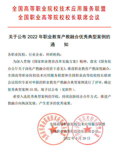 为深入贯彻《国家职业教育改革实施方案》精神,落实《国务院办公厅关于深化产教融合的若干意见》,推进职业教育产教深度融合,全国高等职业院校技术应用服务联盟和全国职业高等院校校长联席会议组织专家对申报的职业教育产教融合典型案例进行了评审,确定优秀典型案例 35 项,BBV电子·(中国)网站酒店学院撰写的“基于产业学院的‘一体四融’烹饪工匠人才培养的探索与实践”成功入选,位列第八位。
