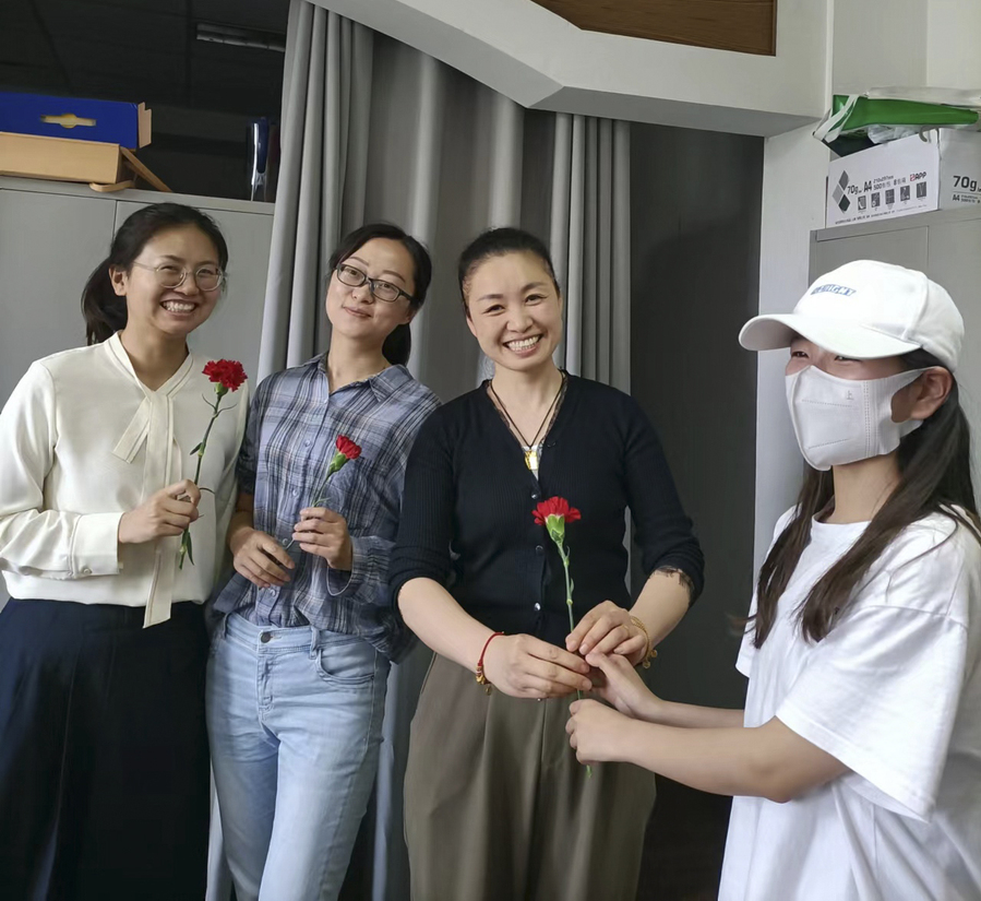 悠悠寸草心,报母三春晖。母亲节临近,同学们因为疫情无法回到妈妈身边,但封校无法阻拦他们对亲情的传递。大家通过制作手工贺卡、录制视频等方式对妈妈隔空示爱,用最亲切、最真诚的话语向母亲表达感谢及祝福。同学们还来到办公楼、食堂等场所,为每一位女教职工送上一朵美丽的康乃馨和诚挚的祝福,在特别的日子,给“母亲们”一个意想不到的“惊喜”。