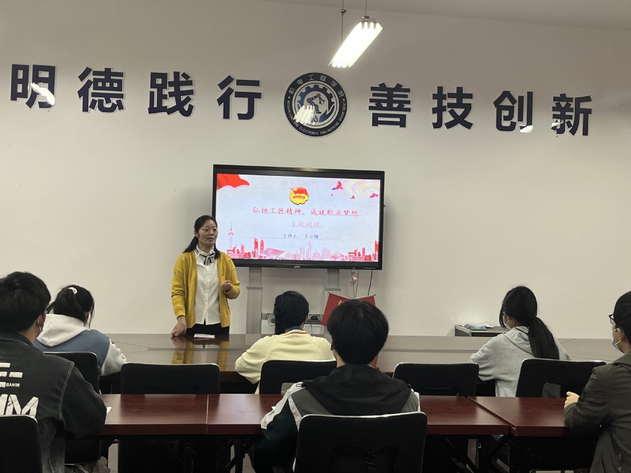 王小媛老师向同学们详细阐述了工匠精神的内涵,她勉励同学们在专业上专心致志、精益求精、锲而不舍,充分利用学校的资源,树立学好技能的目标,理论联系实践,不断提高自己的技能水平;在学习和工作中要有高度的责任心,敢于挑战,勇于担当,一丝不苟,精益求精。