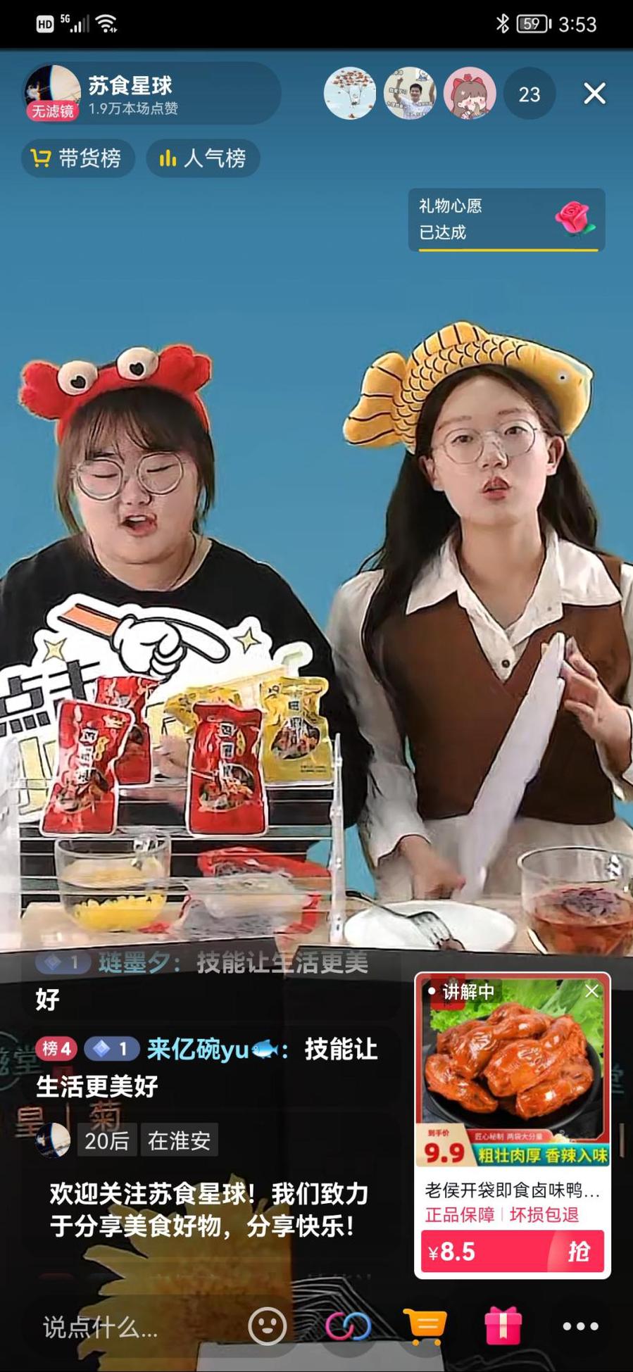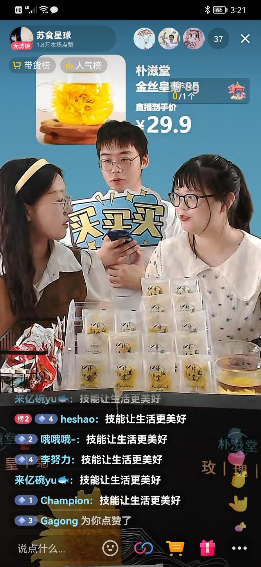 5月10日下午,财贸学院开展“磨砺技能,与食俱进”直播电商带货活动。本次活动是财贸学院联手江苏老侯珍禽食品有限公司和江苏闵卓农业发展有限公司等企业开展的校园电商直播专场活动,通过校企合作开展线上直播带货。该院电子商务专业的多名学生在专业老师的带领下,于苏食智药众创空间的校内直播间通过自营抖音账号“苏食星球”进行直播。经过两个小时的直播,线上直播带货成交四十余单,销售额近千元。
