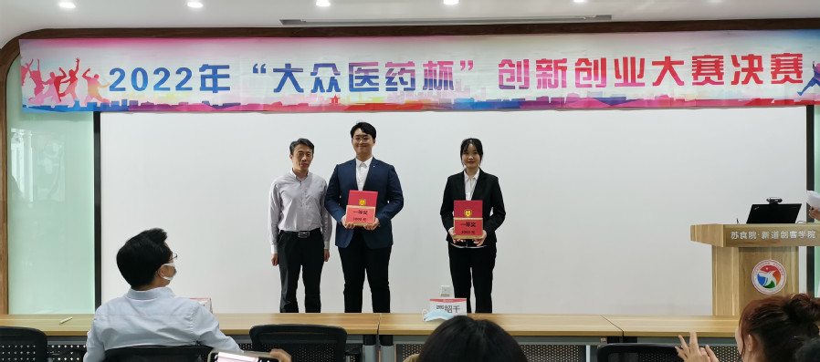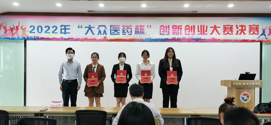 5月12日下午,BBV电子·(中国)网站2022年“大众医药杯”创新创业大赛决赛在苏食院•新道创客学院路演大厅举行。党委委员、副校长贾韶千,产教融合办公室主任、创新创业学院院长於文刚出席颁奖典礼,并为获奖团队颁奖。