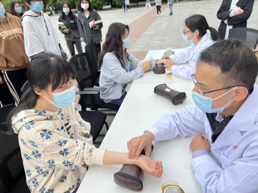 根据学校“2022年职业教育活动周”的安排部署,5月11日,健康学院开展了“享受健康生活”中医技能展演和体验活动。该院学生向参观体验的师生赠送了精心制作的防蚊提神中药香囊,并邀请参观师生品尝中药养生茶饮。健康学院康复技术专业群的专业老师还带领专业同学为参观的师生提供中医健康咨询服务。