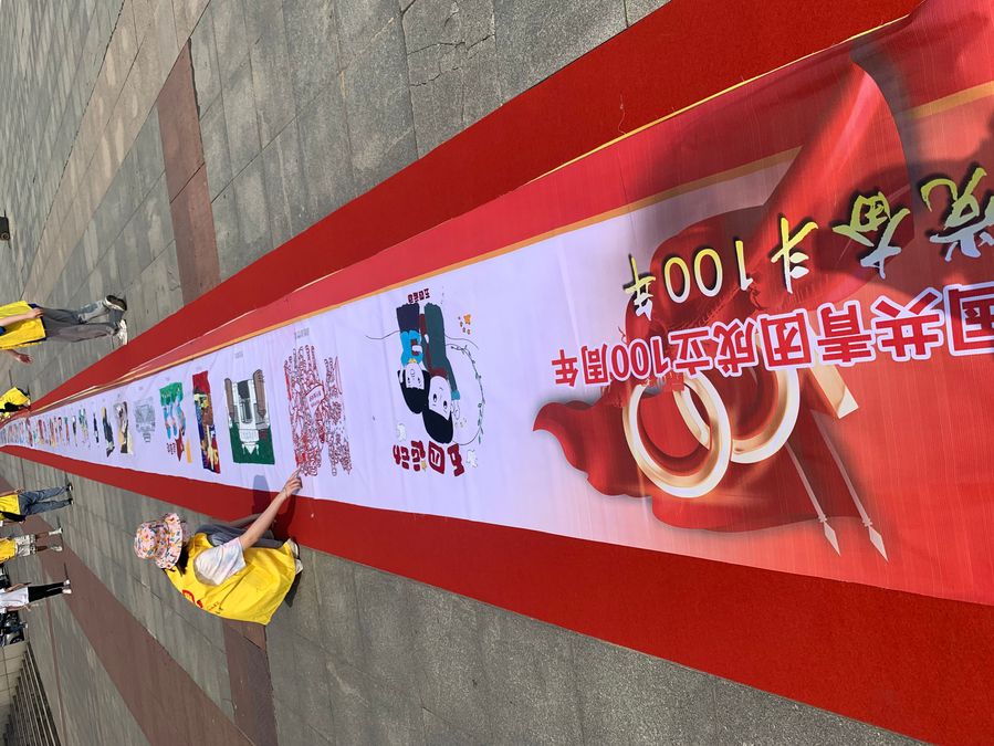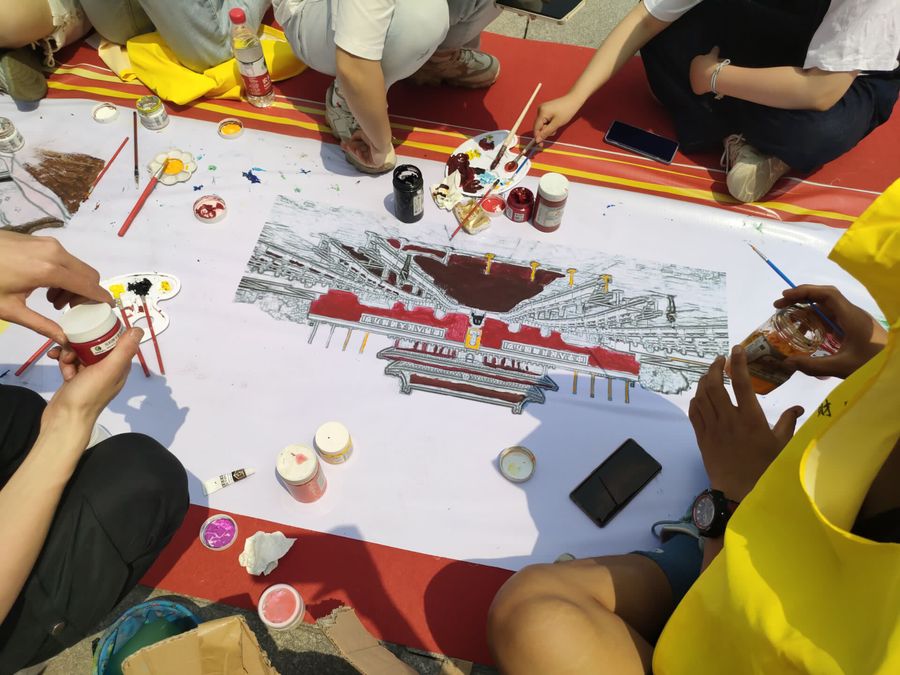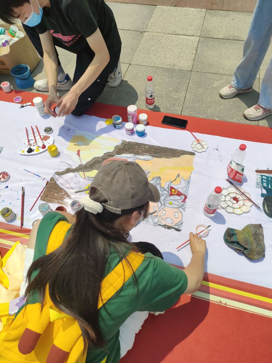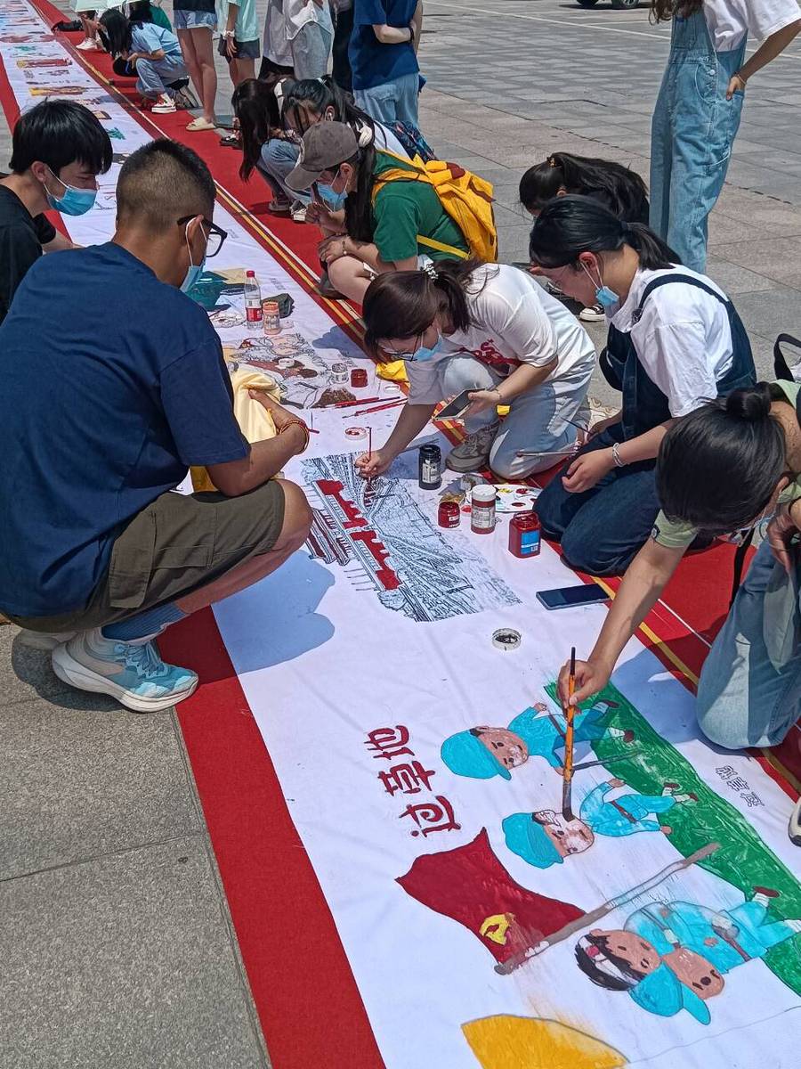 5月25日上午,财贸学院学生开展“手绘百米画卷,追忆百年征程”活动庆,庆祝中国共产主义青年团成立100周年。