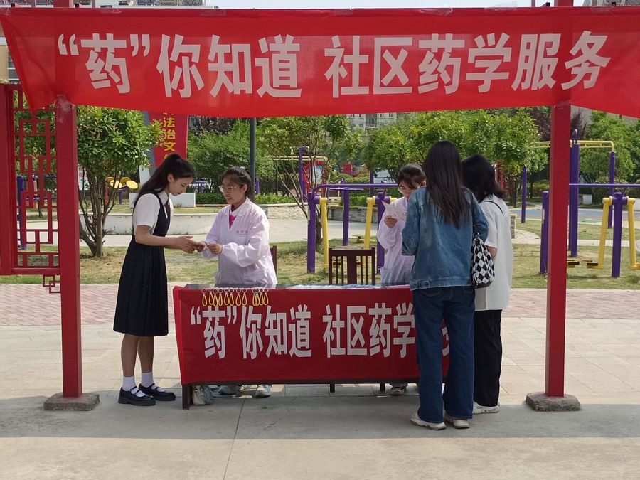 讲座结束后,药学院“关馨妮”受助学子们纷纷利用专业所学知识,在社区积极宣传健康知识,包括夏季女性养生、家里常备药物等,与社区居民现场互动,气氛热烈。