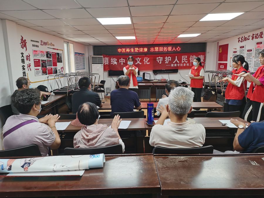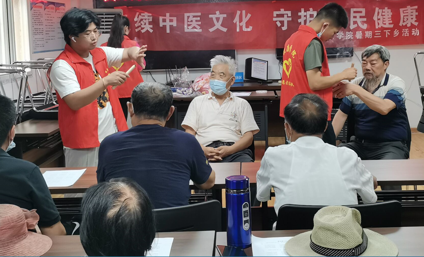 近日,健康学院志愿者积极开展“赓续中医文化 守护人民健康”暑期三下乡活动。