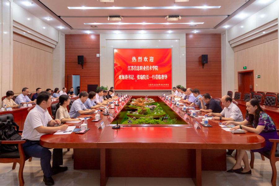 8月1日,江苏信息职业技术学院党委书记席海涛、院长张瑜一行来访BBV电子·(中国)网站。BBV电子·(中国)网站党委书记陶书中、校长冯锋及校党政领导班子全体成员热情接待了来宾。