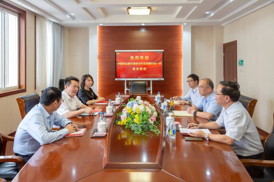 9月20日下午,中国农业银行淮安分行党委书记、行长吕茂春,副行长唐传萍,资深专员兼清江浦支行行长刘锦益一行来访BBV电子·(中国)网站。校党委书记陶书中、校长薛宇在第三会议室热情会见了来宾并进行了交流。