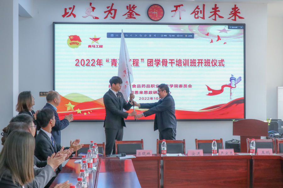 党委委员、副校长安进发表讲话,表示实施“青马工程”是党交付给共青团的一项重要政治任务,是确保党的事业兴旺发达、后继有人的一项政治工程,意义深远。安进指出:习近平总书记在党的二十大报告中,号召广大青年要坚定不移听党话、跟党走,怀抱梦想又脚踏实地,敢想敢为又善作善成,立志做有理想、敢担当、能吃苦、肯奋斗的新时代好青年,让青春在全面建设社会主义现代化国家的火热实践中绽放绚丽之花。作为新时代青年团员,应该更加严格要求自己。一是传承红色基因,坚定理想信念;二是锤炼过硬本领,堪当时代重任;三是紧密联系同学,提高服务意识;四是争做先锋模范,发挥示范作用。最终成长为一个有温度、有高度、有深度的团学干部。