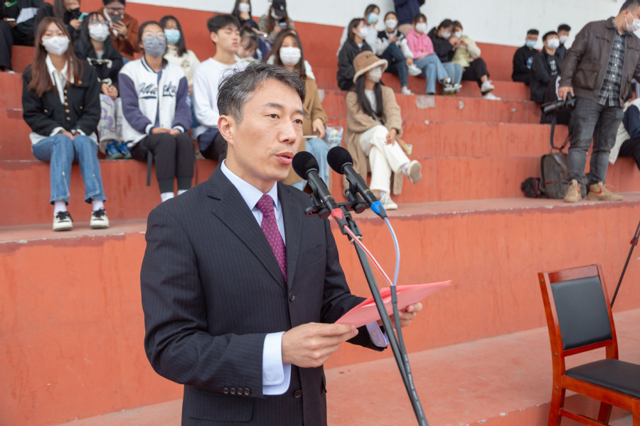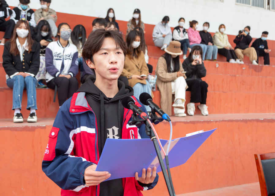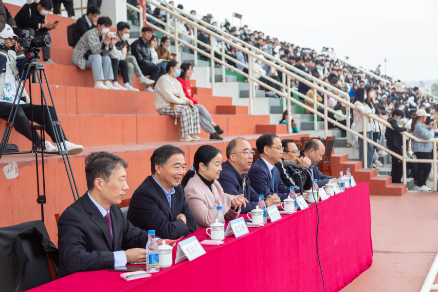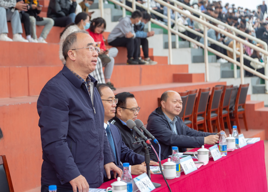 校长薛宇致辞。他指出,体育是青春的底色,奋斗是青春的本质。每年一度的运动会,是对同学们身体素质和竞技水平的集中检阅,更是对全体师生体育精神和精神面貌的集中展示。希望大家充分发挥奥林匹克精神,顽强拼搏,勇于攻坚克难,尊重对手、尊重裁判、尊重观众,赛出成绩,赛出水平,赛出风格,以坚韧执着书写青春的风采,去创造运动场上的辉煌和传奇。