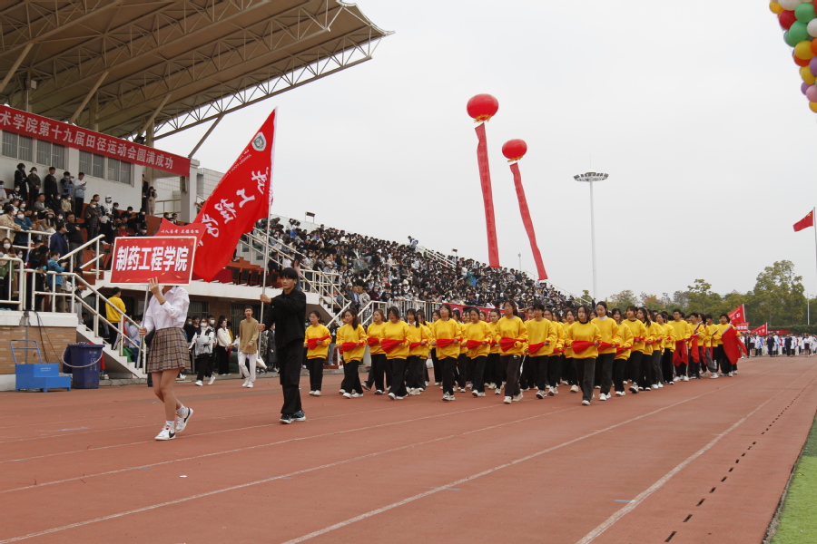 ▲第一个入场的是食品学院代表队,他们的服装代表了从改革开放到全面建成小康社会的历史变迁,他们用舞蹈展现新时代青年的朝气与活力。