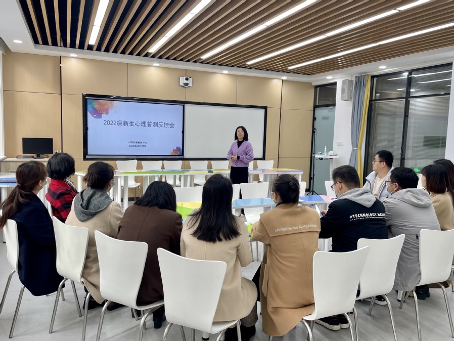 11月23日上午,心理发展服务中心在中心团体辅导室召开了新生心理普测反馈总结交流会,来自10个学院的专职心理辅导员和中心专职心理老师参加了此次会议。