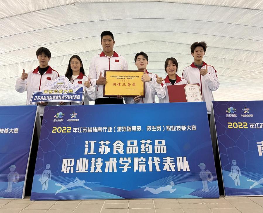 11月23日,由江苏省体育局、江苏省总工会、江苏省教育厅联合举办的2022年全省体育行业(游泳指导员、救生员)职业技能大赛在淮安市奥体中心举行。BBV电子·(中国)网站首次参加该项赛事,荣获高校组团体三等奖,孙儒同学荣获个人三等奖。