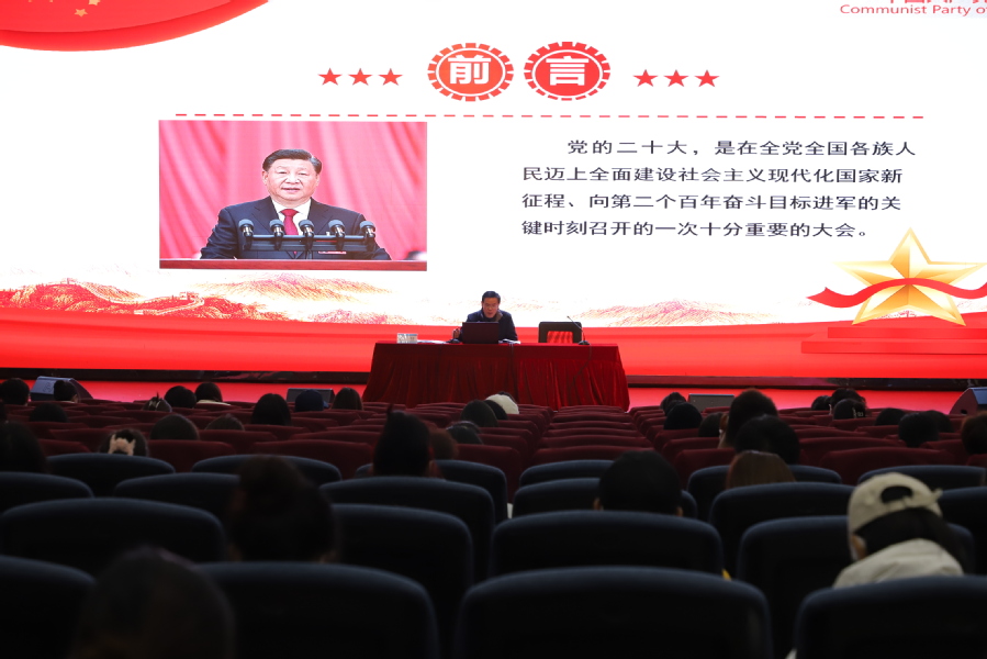 赵慧以《新时代新征程的政治宣言和行动纲领——深入学习贯彻党的二十大精神》为题向全体学员讲授了第一堂课。他从党的二十大的主题入手,着重讲述了五年来经历的几场重大考验和挑战,用“3+16+4”结构回顾总结新时代10年的伟大变革,让学员们充分理解和体会党的伟大领导力和祖国的温暖度,鼓励全体学员认真学习贯彻党的二十大精神,不断增强自身的基础能力素质,把握正确的政治方向,将理论融入实践,不负时代赋予的使命。