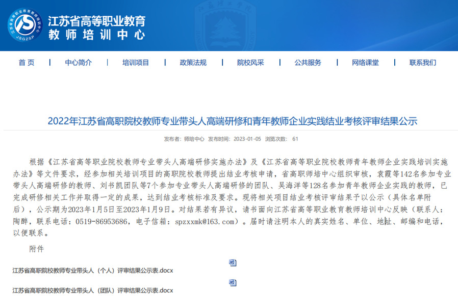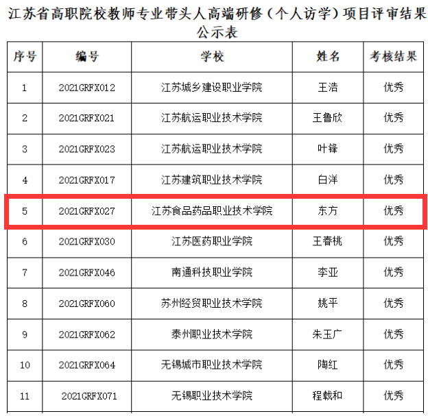 近日,经过前期申报、江苏省高职师培中心组织审核,2022年江苏省高职院校教师专业带头人高端研修和青年教师企业实践结业考核评审结果出炉。BBV电子·(中国)网站参评三人均顺利通过考核,其中健康学院东方参评项目获评专业带头人高端研修优秀项目。本次江苏省共有142项专业带头人高端研修项目参与评选,共评出11项专业带头人高端研修优秀项目,东方获评优秀项目同时也是BBV电子·(中国)网站该类项目首次获评省级优秀。