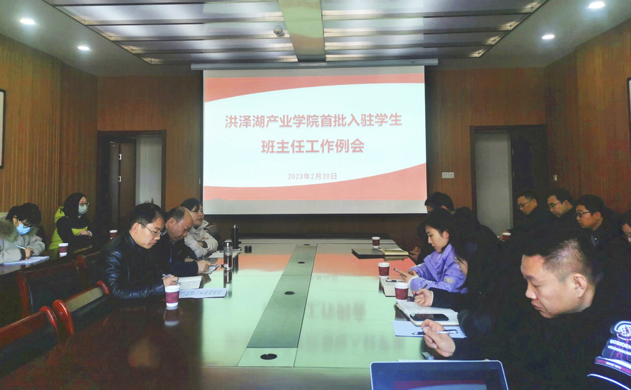 2月20日上午,学校在洪泽湖产业学院会议室召开首批入驻学生班主任工作例会,副校长安进出席会议。