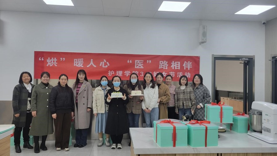 护理学院在学校烘焙培训教室举办了以“‘烘’暖人心 ‘医’路相伴”为主题的庆祝活动,邀请食品学院倪慧老师进行现场指导,为大家讲解了烘焙知识,并亲自示范蛋糕的制作步骤。随后,老师们积极参与到蛋糕制作的过程中,充分体验DIY的制作乐趣,并将亲手制作的蛋糕装进包装盒内,与同学和亲友分享。