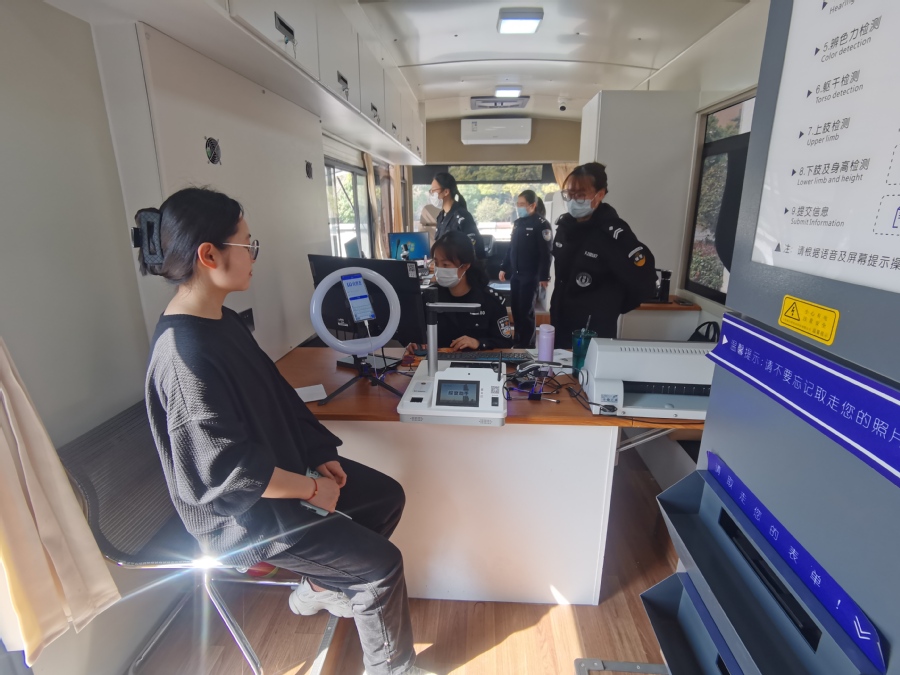 便民服务直通车依托车载自主体检机,便携照相机、无线上网终端、窗口办证设备、广播宣传屏,可以提供户籍、身份证、车驾管、出入境等163项证件办理,并同步开展反诈安防宣传,实现“一车通办、一站办理、综合服务、省时省心”,是市公安局的一种创新服务模式。