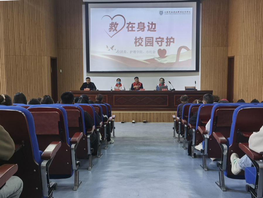 3月9日下午,应急救护知识培训在洪泽湖产业学院报告厅举行。护理学院党总支书记郑虎哲,以及黄国玉、张扬老师应邀培训指导。