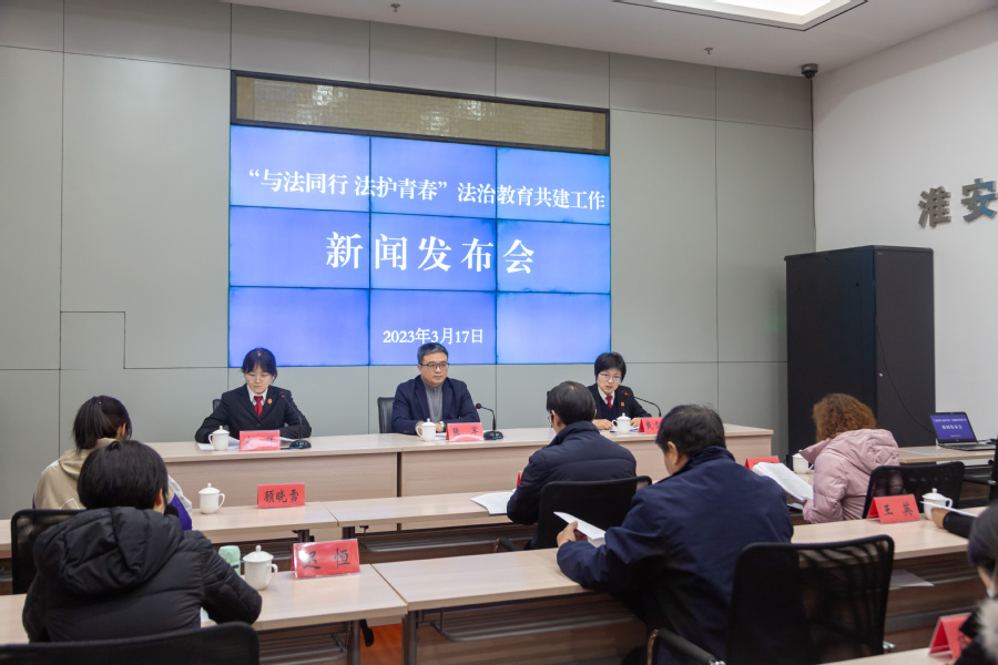 张军详细介绍了学校与法院法治教育共建内容及规划。他指出,普法教育是全社会共同的责任,更是高校立德树人根本任务的一部分。学校将通过与法院合作共建,在教学团队建设、法治素养课程完善、法治实践教学基地共建、“双线”普法宣传、党建共建等方面深入探索,丰富携手共建新时代法治校园的内涵,深化法治实践与法治宣传教育相结合途径的探索,为法治淮安建设作出应有的贡献。
