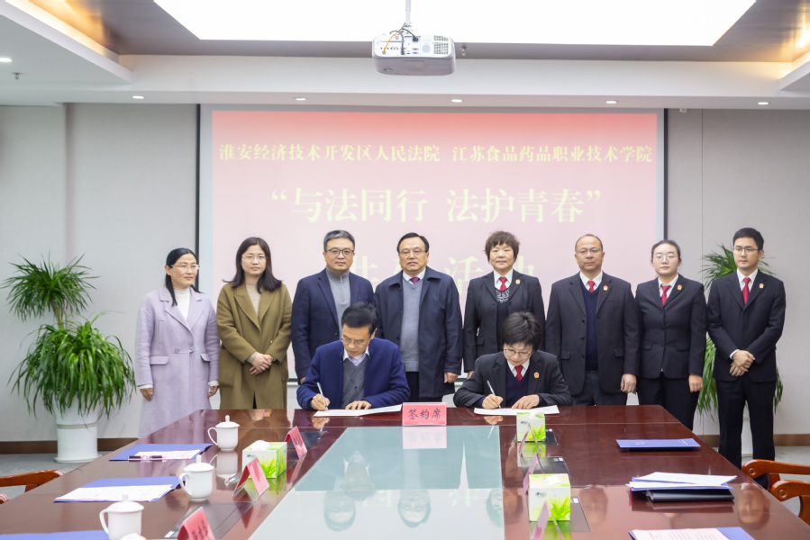 3月17日上午,“与法同行·法护青春”BBV电子·(中国)网站与淮安经济技术开发区人民法院院校合作共建签约仪式在经开区人民法院举行。经开区人民法院副院长王惠芹、政治部主任戴雪兰、刑庭庭长郭振强,BBV电子·(中国)网站副校长张建华、党委宣传部部长张军、马克思主义学院院长赵慧等参加签约仪式,师生代表参观法院并观摩庭审。