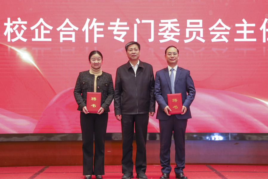 图7 李福荣书记为薛宇校长、翟玮玮书记颁发主任委员聘书
