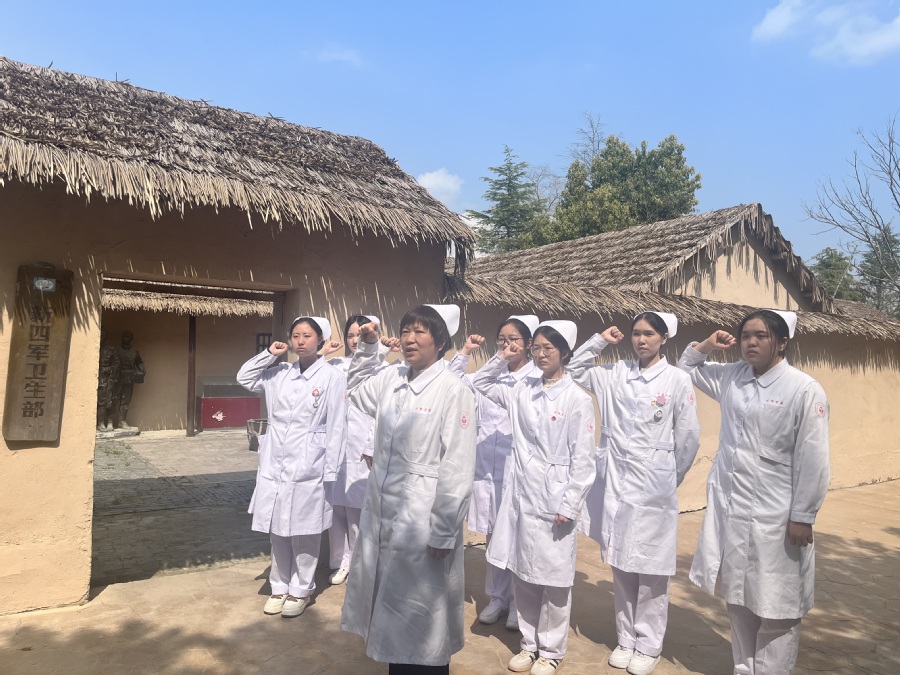 4月1日,护理学院党总支深入革命老区——盱眙县黄花塘新四军军部纪念馆(以下简称“纪念馆”)进行校地共建,开展“行走的课堂-红色医生印记”主题党日活动,缅怀先烈,弘扬“铁军”和“红医”精神。此次活动通过实地走访红色医生当年浴血战斗过的地方,以结对共建、沉浸式体验、场景式教学、主题报告、红色义诊等多样化的红色教育,探索了主题党日活动新模式。