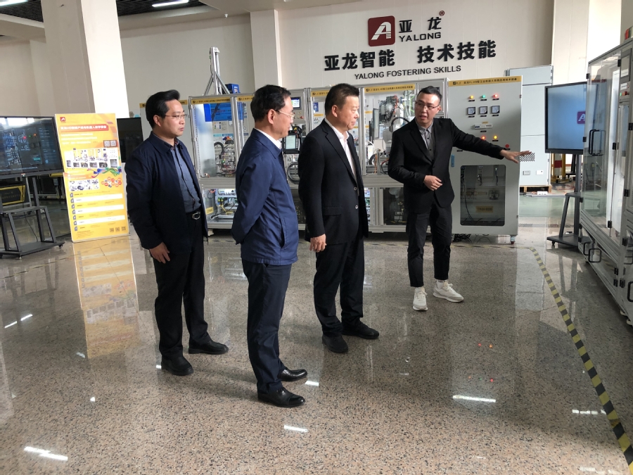 在亚龙智能装备集团股份有限公司,陈继权董事长对薛宇一行表示热烈欢迎,介绍了公司从成立加工厂起步的40年创业历程,并陪同参观了公司智能制造学习工场、YXY技术应用中心、陈昌安技能大师工作室、智能制造领域中外人文交流人才培养基地等产学研基地。在产教融合洽谈会上,校企双方就基于智能制造的食品药品职业教育高质量发展的新方向、校企合作的新机制、产教融合的新模式进行了广泛而深入的探讨。