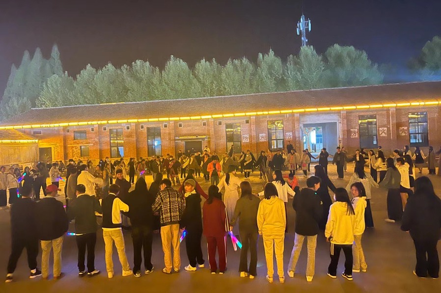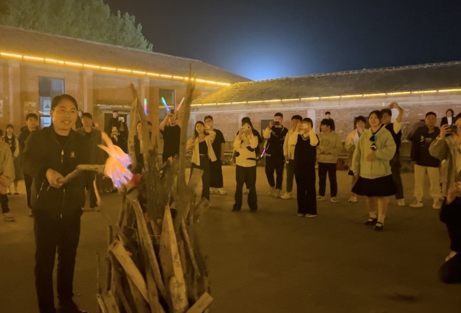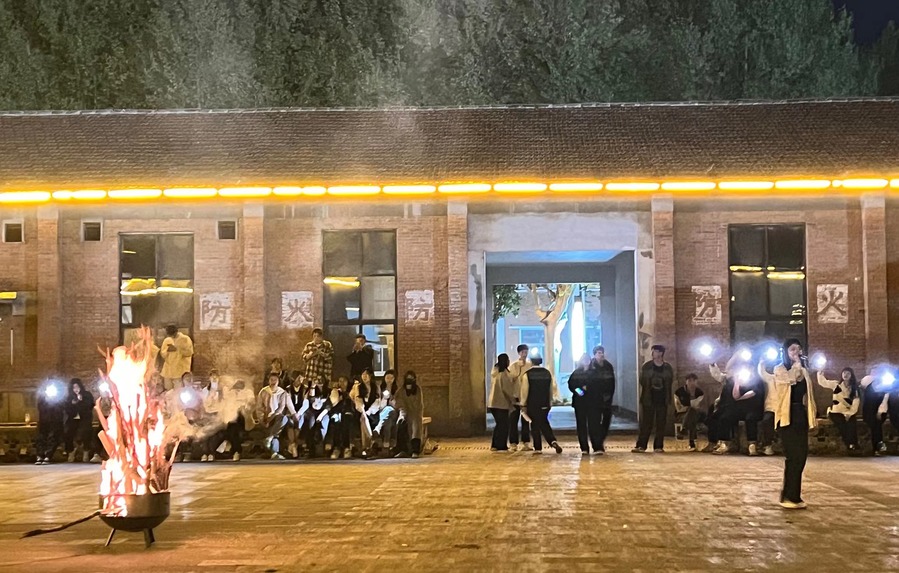 经过简单的“破冰热身”,洪泽湖产业学院直属党支部副书记杨建在同学们的簇拥下为晚会点燃篝火。师生们围着篝火翩翩起舞,在欢乐的《恰恰》中摇摆,在《远程》的深情嗓音中憧憬。王艺老师和小伙伴演绎的《灯火里的中国》,既让我们看见了醉人美景,也感受到了家国情怀。《我的歌声里》是对过去的回忆与纪念,《落叶归根》则是对未来的期盼与希冀,洪泽湖畔必将成为学生们人生中的美丽邂逅和美好瞬间。