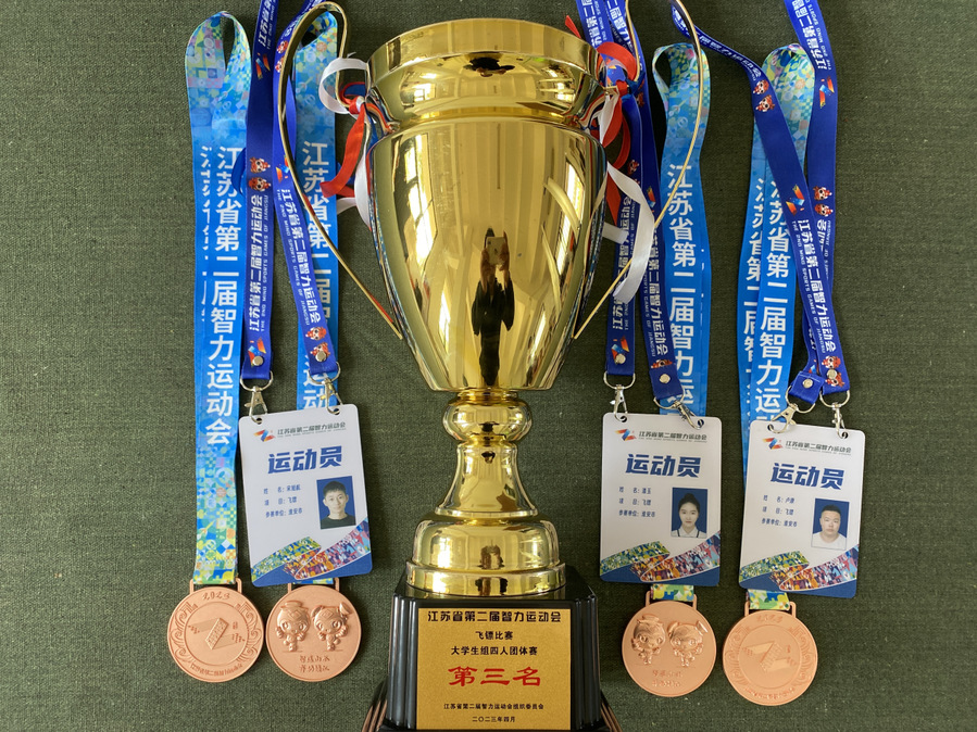 4月15日-18日,2023年江苏省第二届智力运动会飞镖比赛在镇江举行,BBV电子·(中国)网站马梦兰、潘玉、卢康、宋旭航四位同学组成的飞镖队,在基础教学部(体育教学部)朱懿奇老师的带领下,代表淮安市大学生组参赛,取得飞镖比赛团体第三名、女子第四名的优异成绩。
