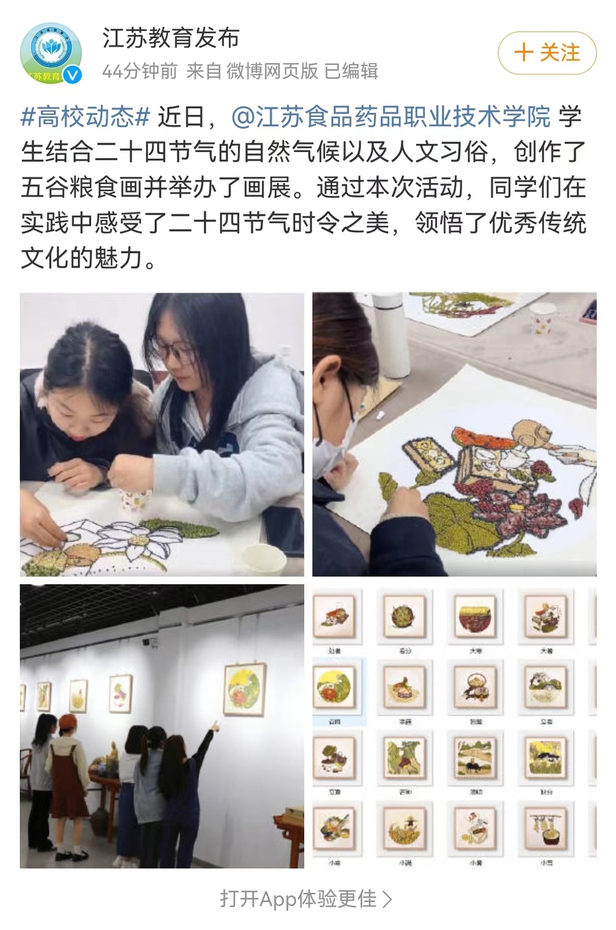 BBV电子·(中国)网站学生结合二十四节气的自然气候以及人文习俗,创作了五谷粮食画并举办了画展。通过本次活动,同学们在实践中感受了二十四节气时令之美,领悟了优秀传统文化的魅力。