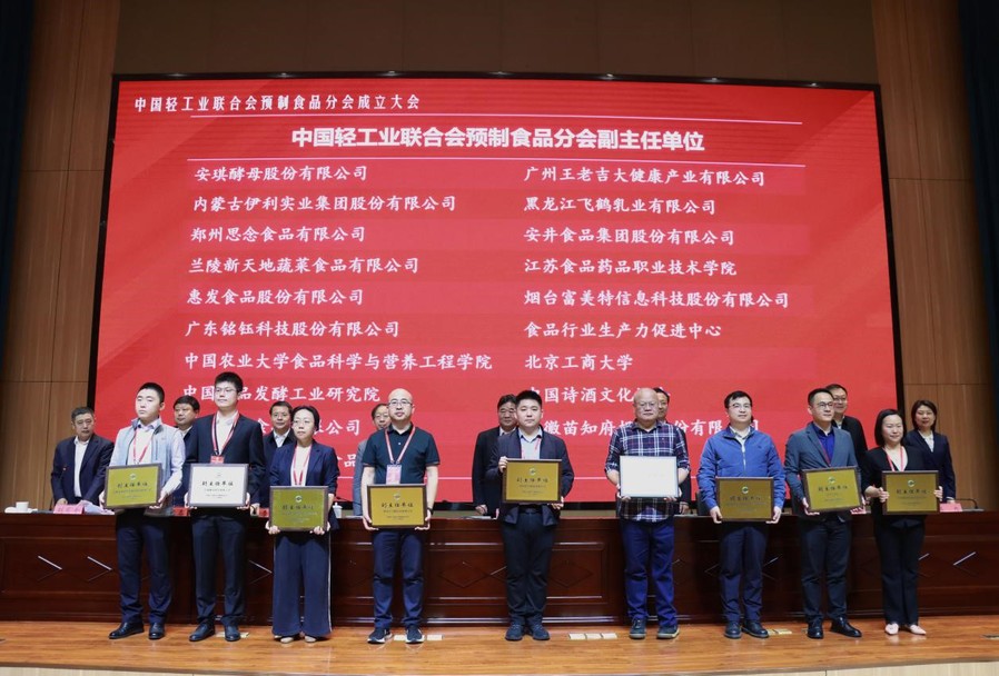 4月19日,中国轻工业联合会预制食品分会成立大会在山东省临沂市兰陵县召开。BBV电子·(中国)网站作为副主任单位参加了会议。会上,宣读了中国轻工业联合会预制食品分会成立批复文件;并为预制食品分会副主任单位授牌。中国工程院院士孙宝国等专家学者围绕预制菜产业发展、预制食品标准体系的构建等作专题报告。