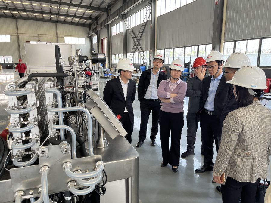 翟玮玮指出访企拓岗是学校深化产教融合校企合作的重要途径,也是促进毕业生高质量就业的重要举措,希望校企双方以此次交流为契机,助力校企合作走深走实、落地见效,共同助力食品产业高质量发展。程培表示期待持续深化校企全方位合作,以更多创新性的项目合作为引领,为双方创造更加广阔的合作空间,同时欢迎学校毕业生到公司实习就业。会后,在公司生产部经理的带领下,翟玮玮一行参观了公司的产品生产车间。