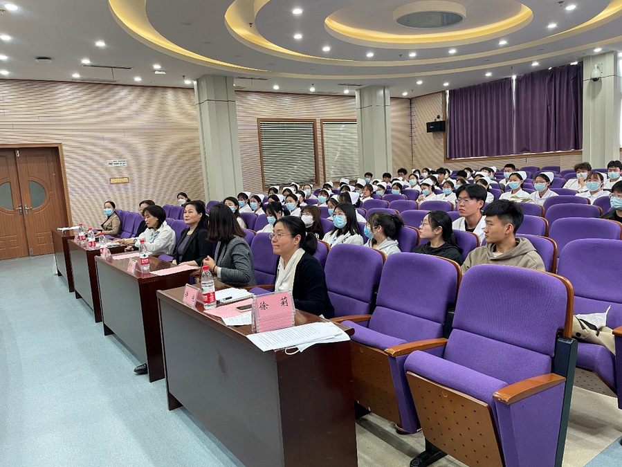 相见欢的最后,护理部副主任许艳详细介绍了护理部规范化实习培养模式,她希望同学们珍惜实践机会,在实践中学习和巩固理论知识,不断地积累工作经验和社会经验,丰富阅历,在新的环境下快速完成角色转换,在学习过程中,要不断从前辈、榜样身上汲取力量,踔厉奋发、勇毅前行;“敢担当、知冷暖、懂感恩”,用心感受实习生活,用爱回馈护理行业,用情承袭前辈之爱。