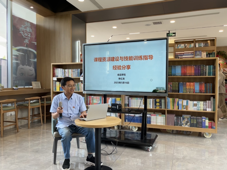 5月16日,食品学院在淮安书房九龙湖店组织开展“先锋讲坛”活动,该院教师李红涛从课程建设、教材建设、指导学生三个方面进行分享,回顾了面包生产技术课程建设历程,分析了该课程在立项院级精品在线开放课程、省级十三五重点规划教材、省级在线开放课程、国家级十三五规划教材等各时期的建设过程,着重介绍了立体式教材《面包生产技术》以及活页式教材《焙烤食品生产技术》建设过程和经验,从调研、编写、拍摄、修改、核对等方面加以介绍与阐释,最后在指导学生方面强调要加强实验实训、专业实训、技能综合实训,提升学生动手能力、职业技能,帮助学生用技能改变人生、成就梦想。