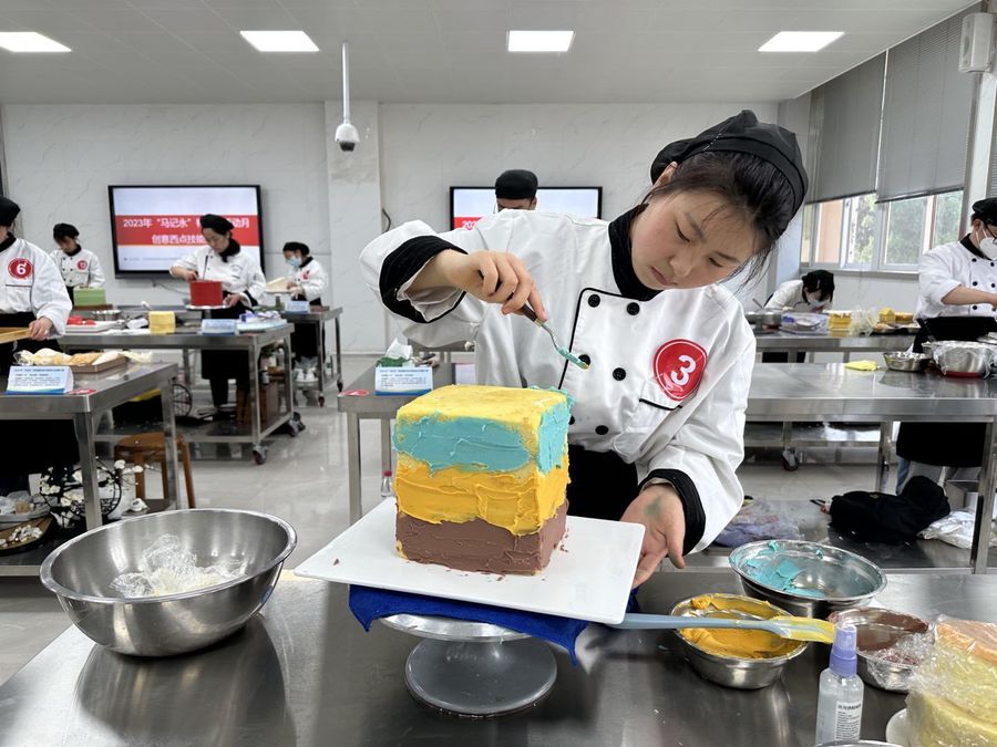 5月28日,酒店学院在烹饪实训中心举办了2023年“马记永”杯技能活动月创意西点技能大赛。