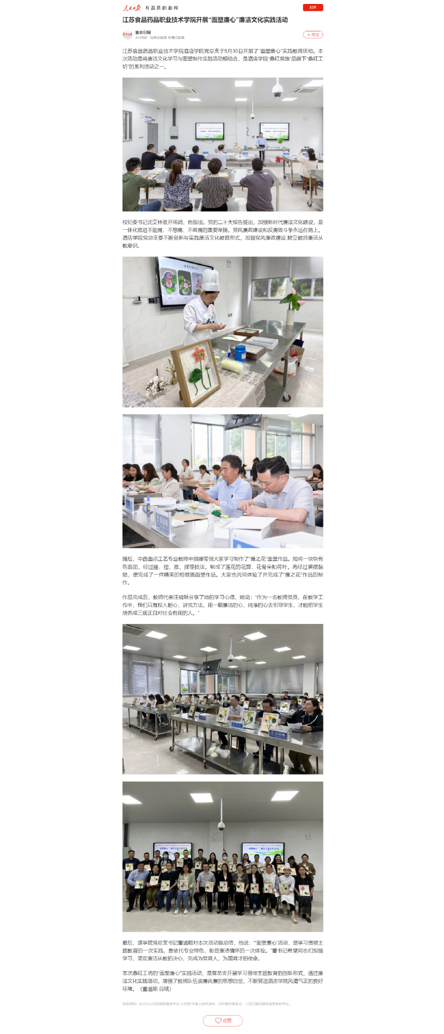 本次鼎红工坊的“面塑廉心”实践活动,是党总支开展学习贯彻主题教育的创新形式,通过廉洁文化实践活动,增强了教师队伍崇廉尚廉的思想自觉,不断营造酒店学院风清气正的良好环境。