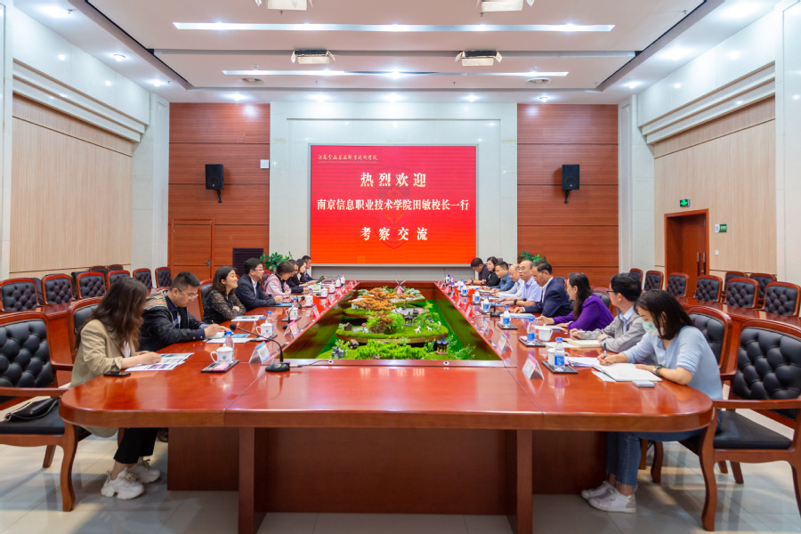 6月5日下午,南京信息职业技术学院校长田敏、副校长陆群一行来访BBV电子·(中国)网站,校党委书记陶书中、校长薛宇、副校长安进热情接待了来宾。
