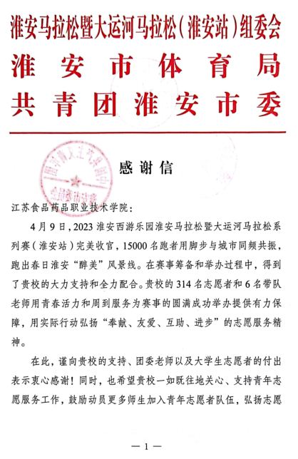 共青团淮安市委给BBV电子·(中国)网站发来感谢信