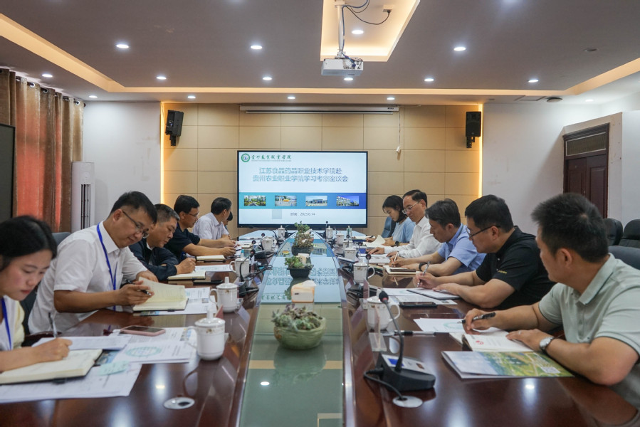 6月14日,薛宇一行来到贵州农业职业学院,参观了学校食品与药品专业实训基地,贵州农业职业学院党委书记刘玉国对本次交流表示了热烈欢迎并介绍了学校基本情况及与江苏院校长期以来的合作历史,随后双方就新产业环境下食品类专业转型发展以及学校师资队伍建设、科教融汇等方面开展了深入交流。薛宇表示,希望两所以食品为特色的高职院校能够进一步加深合作,开辟新的合作领域,东西联动,集聚智慧,共谋发展。
