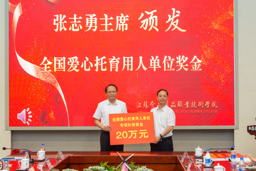 张志勇主席向BBV电子·(中国)网站颁发全国爱心托育用人单位奖金20万元。