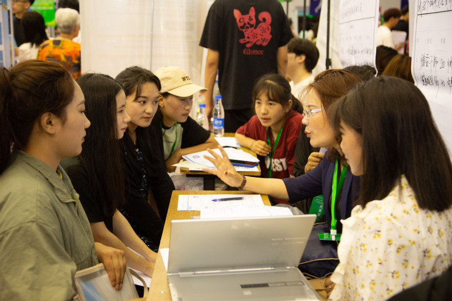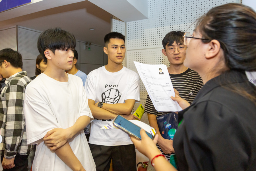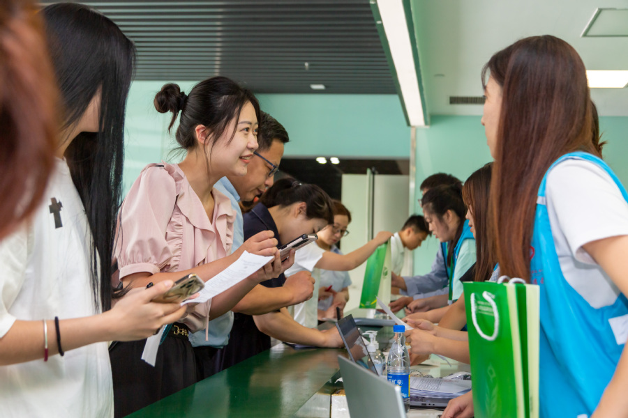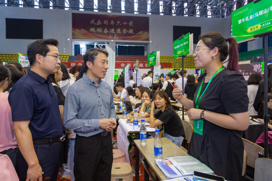 炎热的天气并没有影响毕业生的求职热情,招聘会现场人头攒动,交流气氛温馨有序,前来应聘的毕业生们纷纷带着个人简历求职面试,在企业招聘人员面前自信地展示自己。各企业的招聘人员耐心细致地向同学们介绍企业的业务范畴、企业文化、员工岗位职责、薪资福利、职业发展、团队风采等情况,并详细解答了同学们提出的疑问。扬子江药业集团有限公司、南京南农食品有限公司、广东骏丰频谱股份有限公司等企业招聘点都排起了“长龙”,毕业生们踊跃求职应聘,部分在校学生也来到招聘现场,了解求职应聘经验,询问就业市场情况。