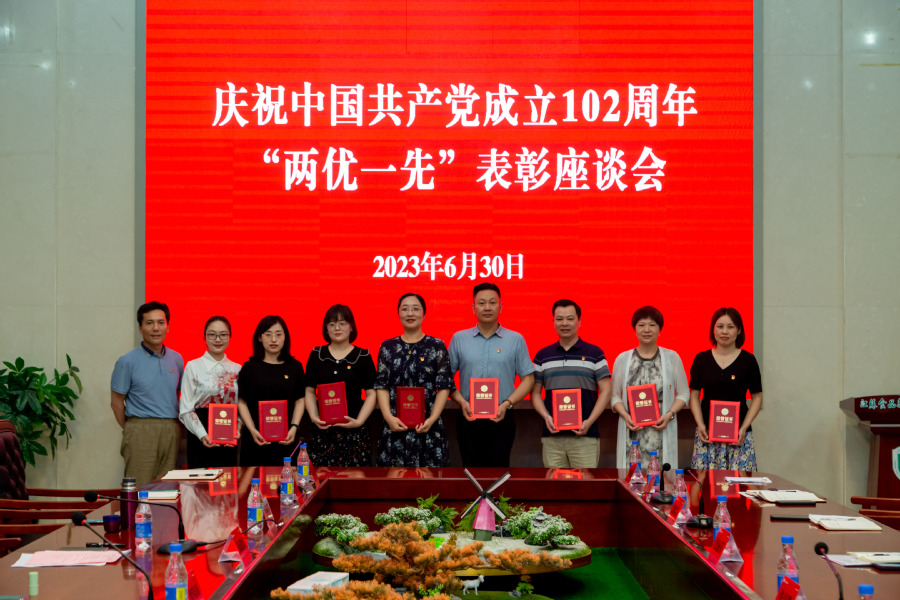 6月30日下午,学校在图书馆多功能厅召开“两优一先”表彰座谈会。党委副书记翟玮玮,党委委员、组织部长周耀明,党委委员、宣传部长张军出席会议。会议由周耀明主持。