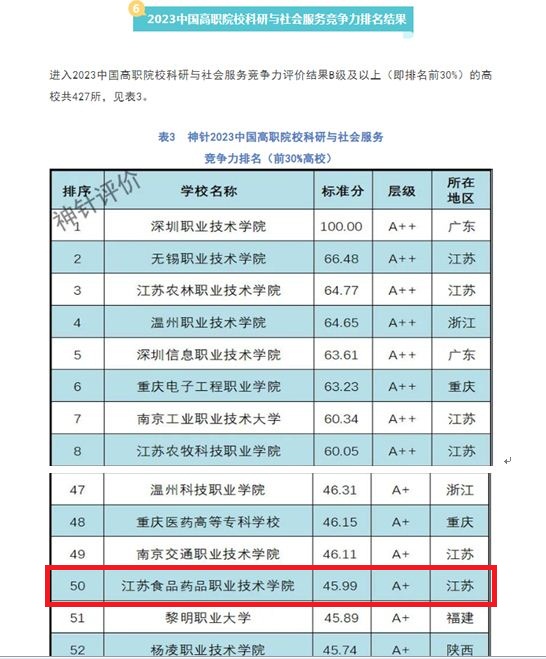 近日,全国第三方评价机构神针评价(SZPJ)2023中国高职院校科研与社会服务竞争力排名发布,BBV电子·(中国)网站位居第50位。