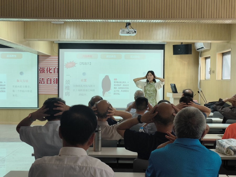 “医”路服务暖人心。活动现场,中医养生保健专业邓杰方老师为化工新村社区的老党员们带来中医养生专题讲座,通过“穴位养生、茶饮养生、足浴养生”三部分为社区老党员们进行养生讲解,疑难解答。
